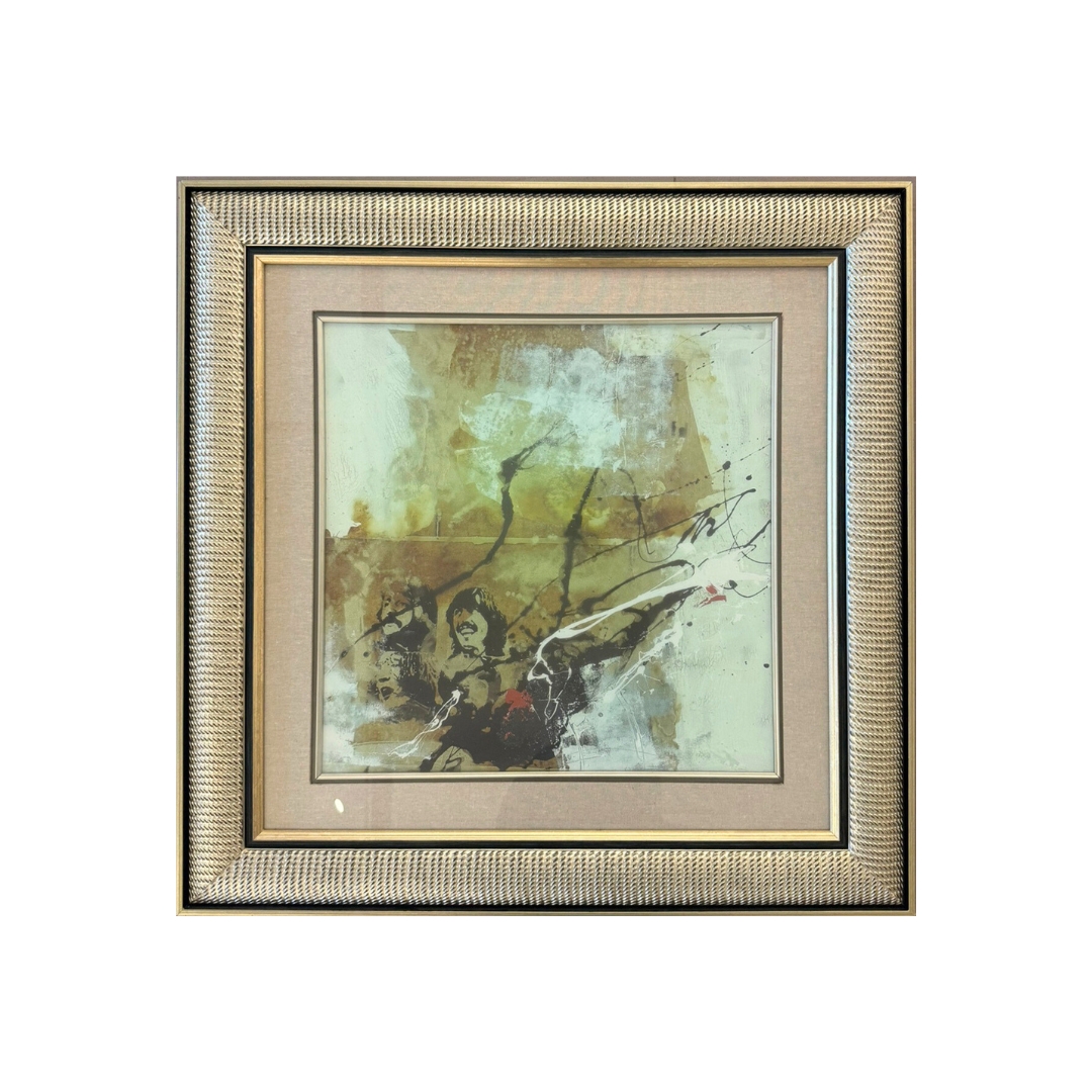 Each brushstroke flows across the canvas, creating texture and depth that shimmer within its elegant champagne-gold frame.