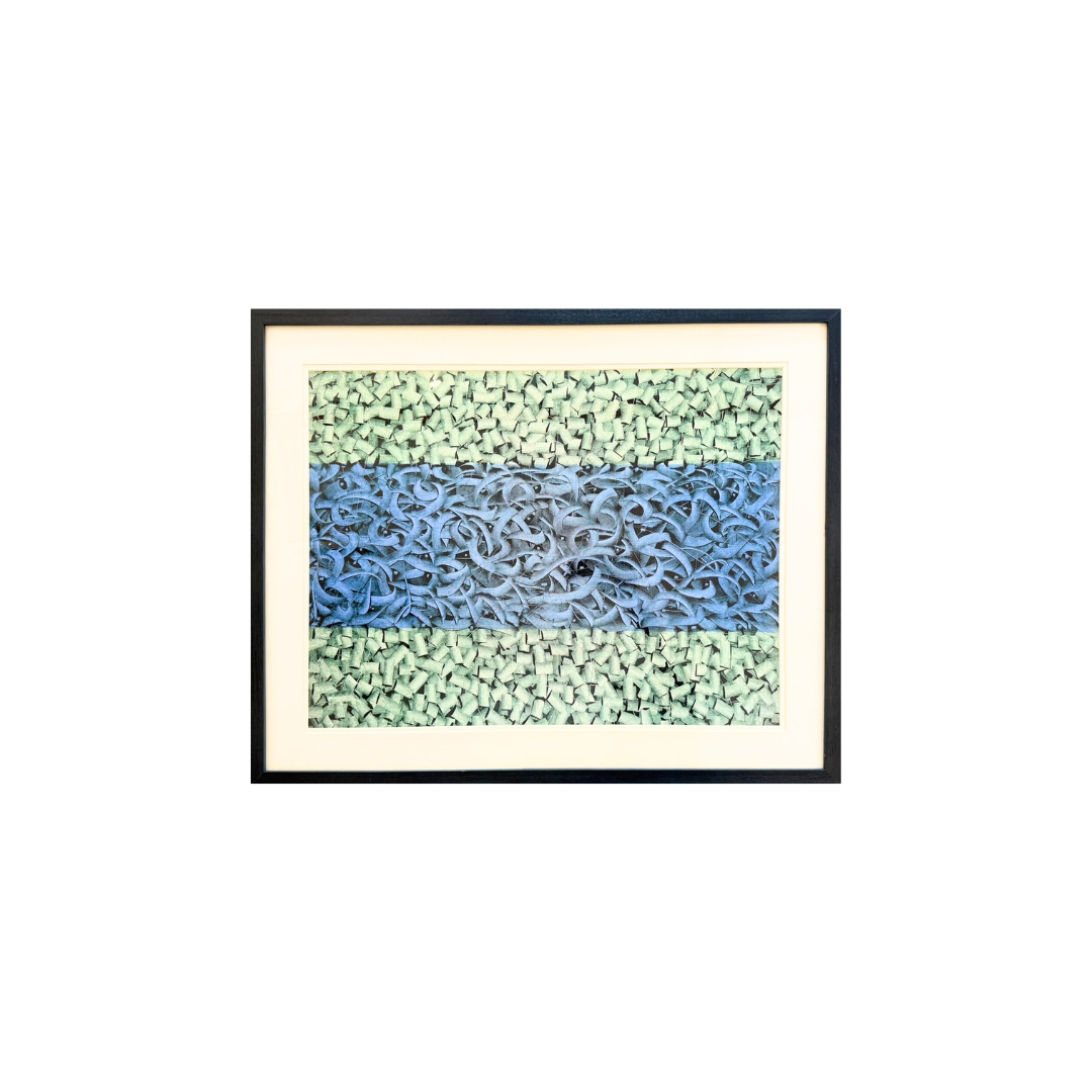 Layers of blue and green intertwine like gentle waves, creating a rhythmic surface that feels both organic and refined.